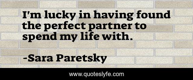 This page presents the quote "I'm lucky in having found the perfect partner to spend my life with.". Author of this quote is Sara Paretsky. This quote is about partner, relationship,.