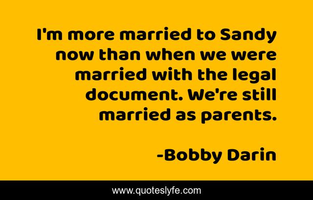 This page presents the quote "I'm more married to Sandy now than when we were married with the legal document. We're still married as parents.". Author of this quote is Bobby Darin. This quote is about now, parents, married,.