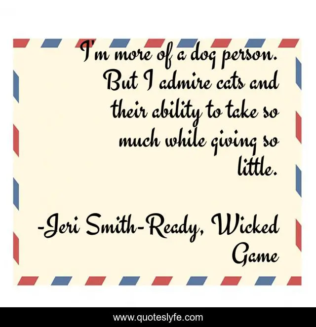 "Jeri Smith-Ready, Wicked Game Quotes." Quoteslyfe.com, 2025. Fri. 05 Dec. 2025. <https://www.quoteslyfe.com/quote/I-m-more-of-a-dog-person-149123>.