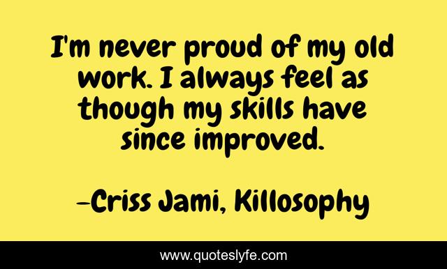 "Criss Jami, Killosophy Quotes." Quoteslyfe.com, 2025. Tue. 09 Dec. 2025. <https://www.quoteslyfe.com/quote/I-m-never-proud-of-my-old-65797>.