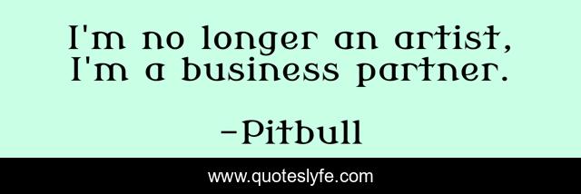 This page presents the quote "I'm no longer an artist, I'm a business partner.". Author of this quote is Pitbull. This quote is about partner, artist,.