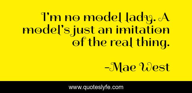 This page presents the quote "I'm no model lady. A model's just an imitation of the real thing.". Author of this quote is Mae West. This quote is about modeling, women,.