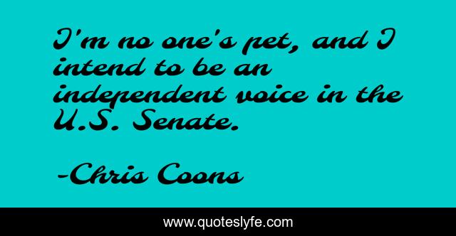 This page presents the quote "I'm no one's pet, and I intend to be an independent voice in the U.S. Senate.". Author of this quote is Chris Coons. This quote is about senate, independent, voice,.