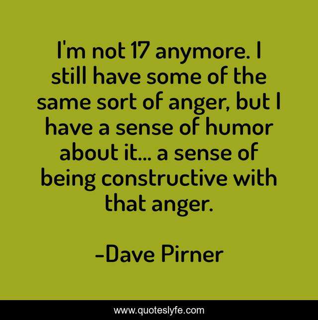 This page presents the quote "I'm not 17 anymore. I still have some of the same sort of anger, but I have a sense of humor about it... a sense of being constructive with that anger.". Author of this quote is Dave Pirner. This quote is about anger, sense of humor, same,.