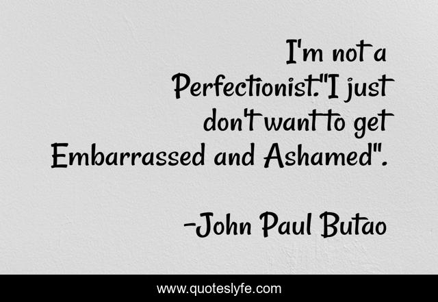 This page presents the quote "I'm not a Perfectionist."I just don't want to get Embarrassed and Ashamed".". Author of this quote is John Paul Butao. This quote is about self-realization, inspirational-motivation,.