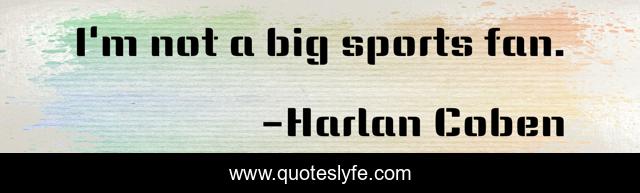 This page presents the quote "I'm not a big sports fan.". Author of this quote is Harlan Coben. This quote is about sports fan, big, fan,.