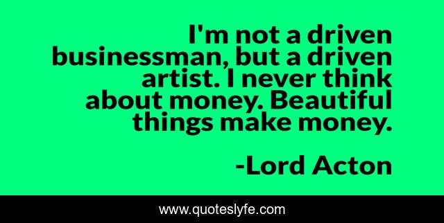 This page presents the quote "I'm not a driven businessman, but a driven artist. I never think about money. Beautiful things make money.". Author of this quote is Lord Acton. This quote is about beautiful, money, artist,.