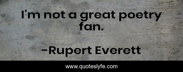 This page presents the quote "I'm not a great poetry fan.". Author of this quote is Rupert Everett. This quote is about great, fan,.