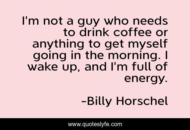 This page presents the quote "I'm not a guy who needs to drink coffee or anything to get myself going in the morning. I wake up, and I'm full of energy.". Author of this quote is Billy Horschel. This quote is about wake up, myself, coffee,.