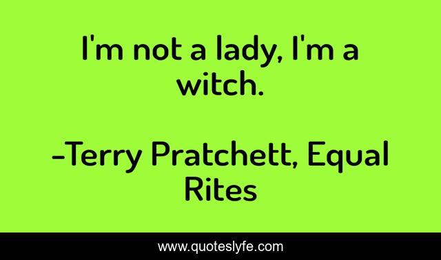 This page presents the quote "I'm not a lady, I'm a witch.". Author of this quote is Terry Pratchett, Equal Rites. This quote is about granny-weatherwax, never-been-a-lady, witches,.
