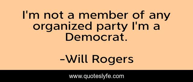 This page presents the quote "I'm not a member of any organized party I'm a Democrat.". Author of this quote is Will Rogers. .