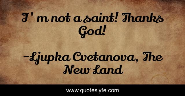 This page presents the quote "I'm not a saint! Thanks God!". Author of this quote is Ljupka Cvetanova, The New Land. This quote is about sanctuary, god, quotes, aphorism, thanks, saint, quote, aphorisms, thanks-to-god,.