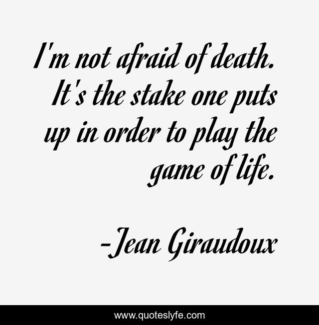 This page presents the quote "I'm not afraid of death. It's the stake one puts up in order to play the game of life.". Author of this quote is Jean Giraudoux. This quote is about play, game, life,.