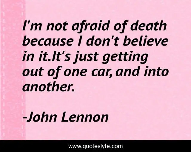 This page presents the quote "I'm not afraid of death because I don't believe in it.It's just getting out of one car, and into another.". Author of this quote is John Lennon. This quote is about spirituality, death,.