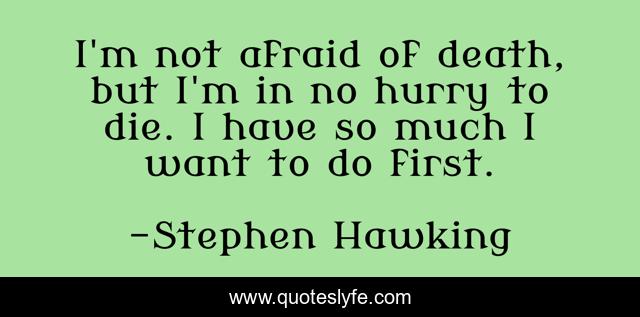 "Stephen Hawking Quotes." Quoteslyfe.com, 2025. Sat. 06 Dec. 2025. <https://www.quoteslyfe.com/quote/I-m-not-afraid-of-death-but-294918>.