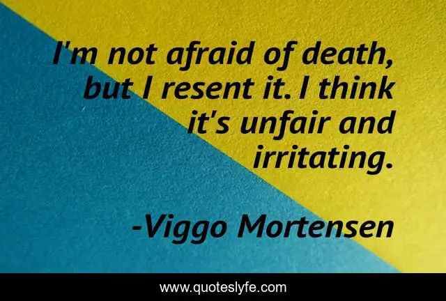 This page presents the quote "I'm not afraid of death, but I resent it. I think it's unfair and irritating.". Author of this quote is Viggo Mortensen. This quote is about afraid, think, irritating,.