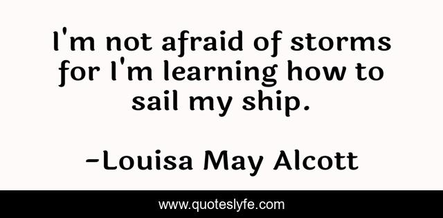 This page presents the quote "I'm not afraid of storms for I'm learning how to sail my ship.". Author of this quote is Louisa May Alcott. .