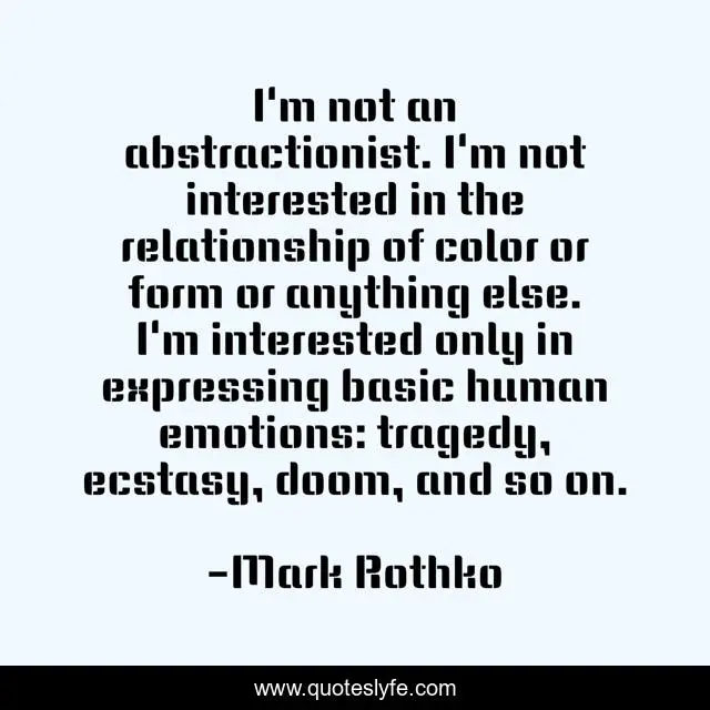 I'm not an abstractionist. I'm not interested in the relationship of color or form or anything else. I'm interested only in expressing basic human emotions: tragedy, ecstasy, doom, and so on.