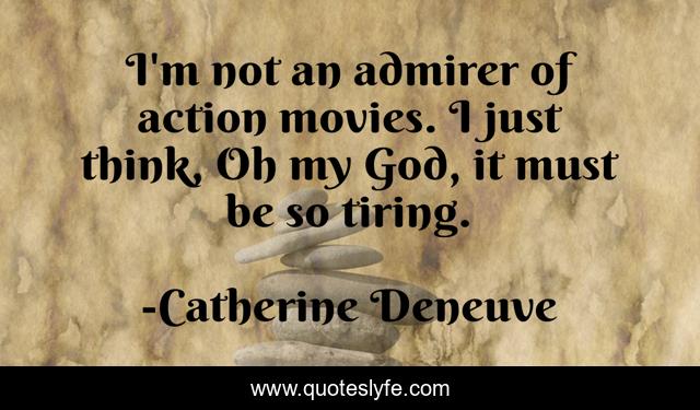 This page presents the quote "I'm not an admirer of action movies. I just think, Oh my God, it must be so tiring.". Author of this quote is Catherine Deneuve. This quote is about action, god, think,.