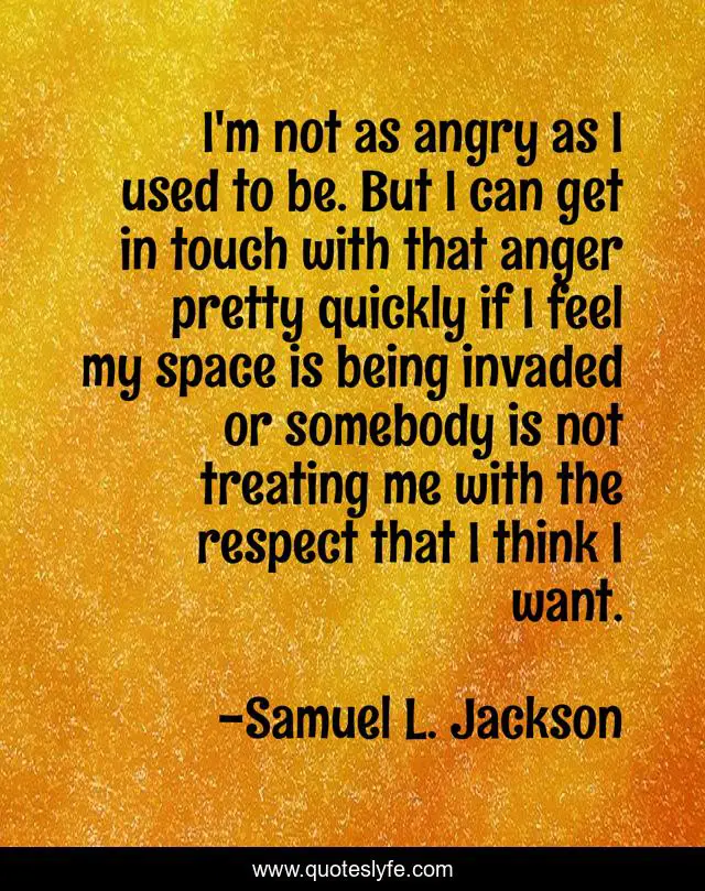 This page presents the quote "I'm not as angry as I used to be. But I can get in touch with that anger pretty quickly if I feel my space is being invaded or somebody is not treating me with the respect that I think I want.". Author of this quote is Samuel L. Jackson. This quote is about me, respect, space,.