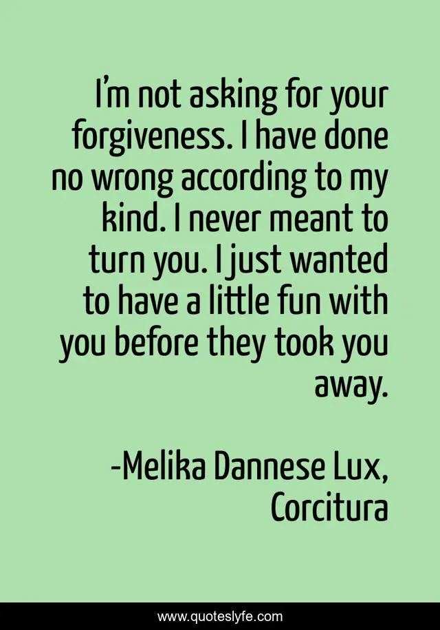 "Melika Dannese Lux, Corcitura Quotes." Quoteslyfe.com, 2025. Sat. 06 Dec. 2025. <https://www.quoteslyfe.com/quote/I-m-not-asking-for-your-forgiveness-190519>.