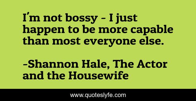 "Shannon Hale, The Actor and the Housewife Quotes." Quoteslyfe.com, 2025. Mon. 08 Dec. 2025. <https://www.quoteslyfe.com/quote/I-m-not-bossy-I-just-happen-7138>.