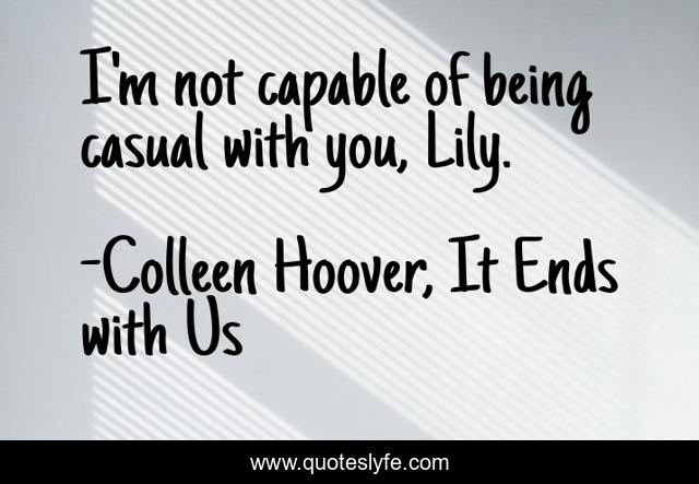 "Colleen Hoover, It Ends with Us Quotes." Quoteslyfe.com, 2025. Fri. 05 Dec. 2025. <https://www.quoteslyfe.com/quote/I-m-not-capable-of-being-casual-124396>.