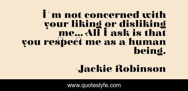 This page presents the quote "I'm not concerned with your liking or disliking me... All I ask is that you respect me as a human being.". Author of this quote is Jackie Robinson. This quote is about me, human,.