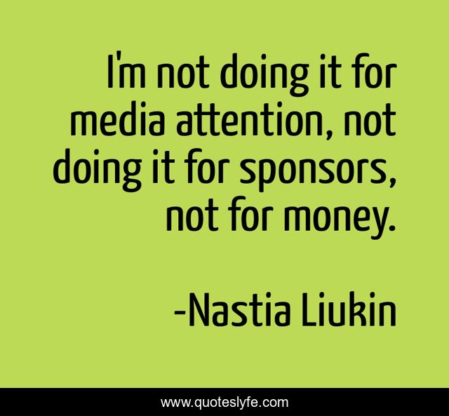 This page presents the quote "I'm not doing it for media attention, not doing it for sponsors, not for money.". Author of this quote is Nastia Liukin. This quote is about gymnast, gymnastics, sports,.