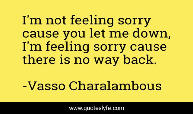 This page presents the quote "I'm not feeling sorry cause you let me down, I'm feeling sorry cause there is no way back.". Author of this quote is Vasso Charalambous. This quote is about inspirational-life, positive, confidence, motivational, optimistic,.