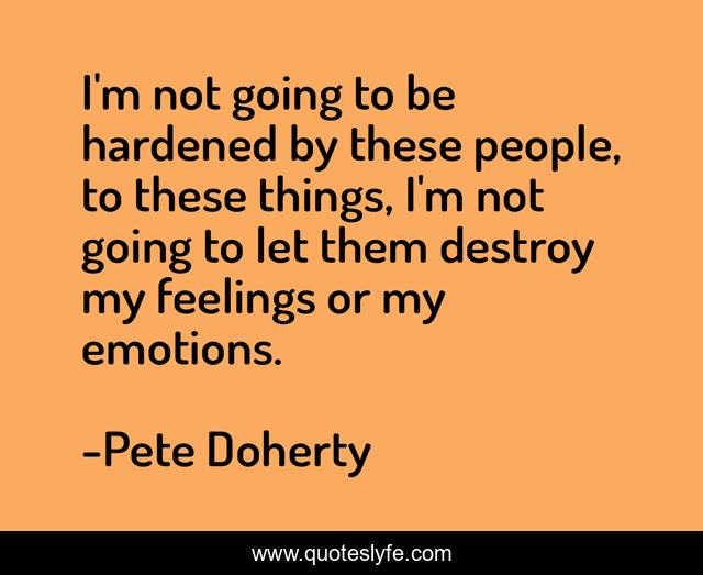 This page presents the quote "I'm not going to be hardened by these people, to these things, I'm not going to let them destroy my feelings or my emotions.". Author of this quote is Pete Doherty. This quote is about destroy, emotions, pete-doherty,.