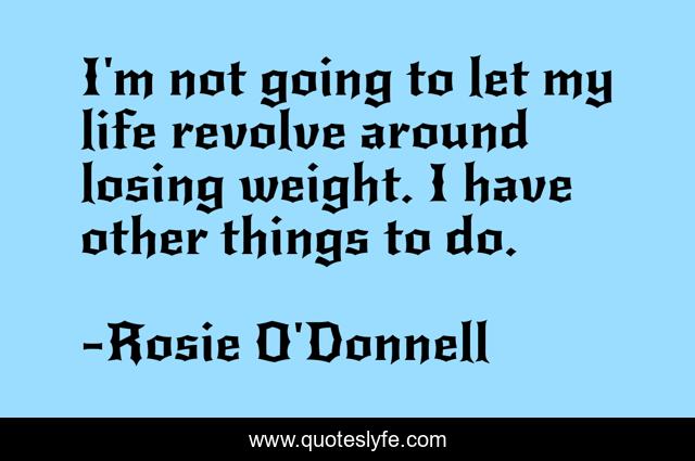 This page presents the quote "I'm not going to let my life revolve around losing weight. I have other things to do.". Author of this quote is Rosie O'Donnell. .