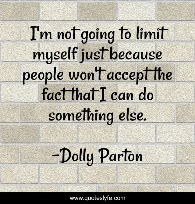 This page presents the quote "I'm not going to limit myself just because people won't accept the fact that I can do something else.". Author of this quote is Dolly Parton. This quote is about enthusiasm, feminism, inspirational,.