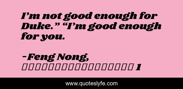 This page presents the quote "I’m not good enough for Duke.” “I’m good enough for you.". Author of this quote is Feng Nong, จอมนางคู่บัลลังก์ 1. This quote is about content, love, happiness, affection,.