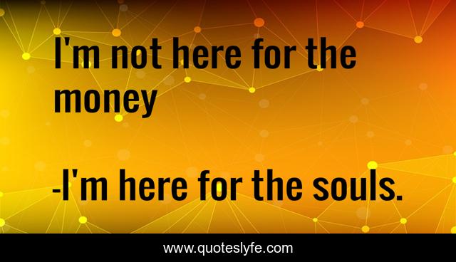 This page presents the quote "I'm not here for the money". Author of this quote is I'm here for the souls.. .