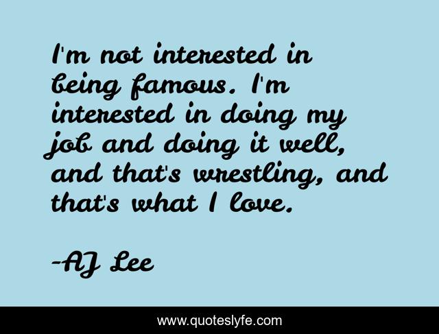 This page presents the quote "I'm not interested in being famous. I'm interested in doing my job and doing it well, and that's wrestling, and that's what I love.". Author of this quote is AJ Lee. This quote is about job, love, affection,.
