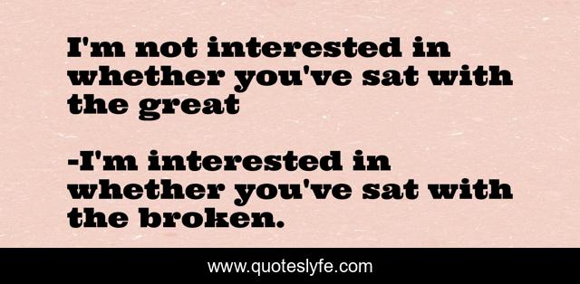 "I'm interested in whether you've sat with the broken. Quotes." Quoteslyfe.com, 2025. Fri. 05 Dec. 2025. <https://www.quoteslyfe.com/quote/I-m-not-interested-in-whether-you-219371>.