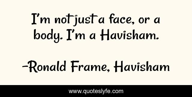 "Ronald Frame, Havisham Quotes." Quoteslyfe.com, 2025. Fri. 05 Dec. 2025. <https://www.quoteslyfe.com/quote/I-m-not-just-a-face-or-171443>.