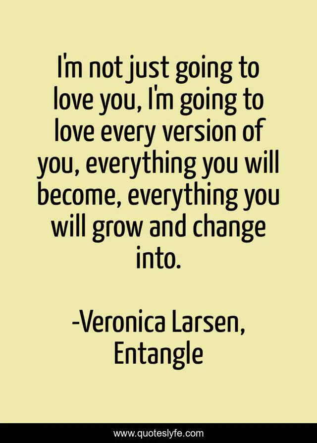 This page presents the quote "I'm not just going to love you, I'm going to love every version of you, everything you will become, everything you will grow and change into.". Author of this quote is Veronica Larsen, Entangle. This quote is about change, future, love, unconditional-love, affection,.