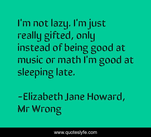 This page presents the quote "I'm not lazy. I'm just really gifted, only instead of being good at music or math I'm good at sleeping late.". Author of this quote is Elizabeth Jane Howard, Mr Wrong. This quote is about humorous, sleeping-in,.