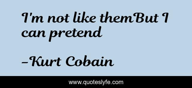 This page presents the quote "I'm not like themBut I can pretend". Author of this quote is Kurt Cobain. This quote is about loneliness, difference, lyric, alienation, lyrics,.