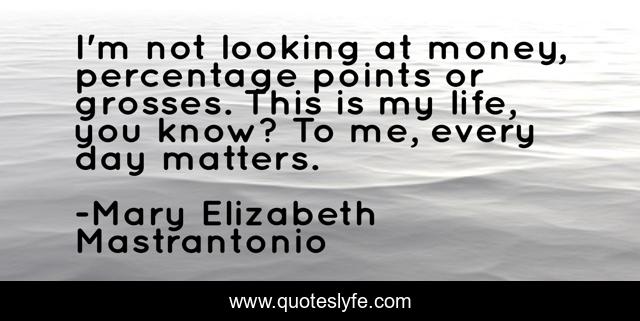 This page presents the quote "I'm not looking at money, percentage points or grosses. This is my life, you know? To me, every day matters.". Author of this quote is Mary Elizabeth Mastrantonio. This quote is about me, life, day,.