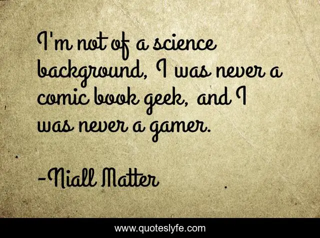 This page presents the quote "I'm not of a science background, I was never a comic book geek, and I was never a gamer.". Author of this quote is Niall Matter. This quote is about book, background,.