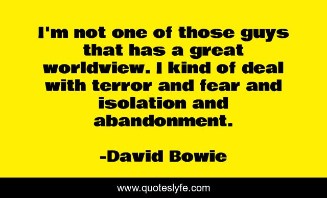 I'm not one of those guys that has a great worldview. I kind of deal with terror and fear and isolation and abandonment.