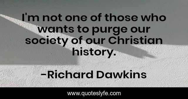 This page presents the quote "I'm not one of those who wants to purge our society of our Christian history.". Author of this quote is Richard Dawkins. This quote is about wants, society, christian,.