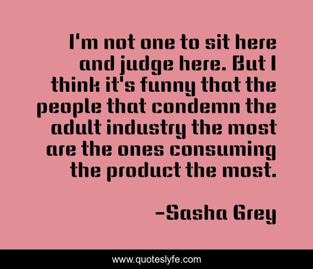 This page presents the quote "I'm not one to sit here and judge here. But I think it's funny that the people that condemn the adult industry the most are the ones consuming the product the most.". Author of this quote is Sasha Grey. This quote is about judge, think, people,.