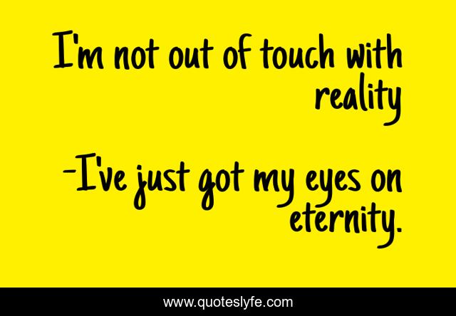 This page presents the quote "I'm not out of touch with reality". Author of this quote is I've just got my eyes on eternity.. .
