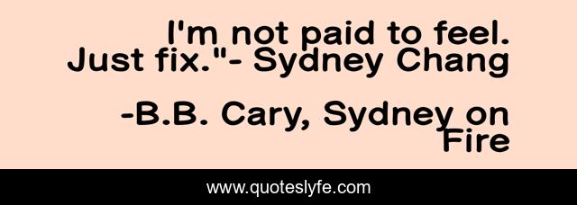 This page presents the quote "I'm not paid to feel. Just fix."- Sydney Chang". Author of this quote is B.B. Cary, Sydney on Fire. This quote is about mystery, strong-female-protagonist, thriller, crime,.