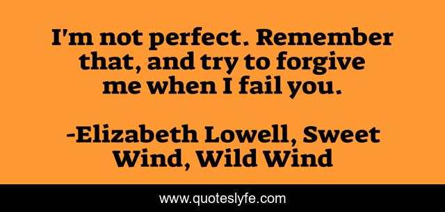 This page presents the quote "I'm not perfect. Remember that, and try to forgive me when I fail you.". Author of this quote is Elizabeth Lowell, Sweet Wind, Wild Wind. This quote is about carson-blackridge, love, forgiveness, affection,.