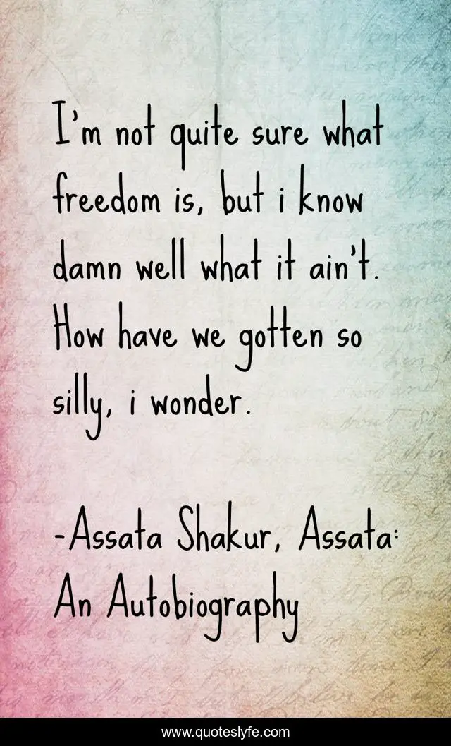 "Assata Shakur, Assata: An Autobiography Quotes." Quoteslyfe.com, 2025. Mon. 08 Dec. 2025. <https://www.quoteslyfe.com/quote/I-m-not-quite-sure-what-freedom-54989>.